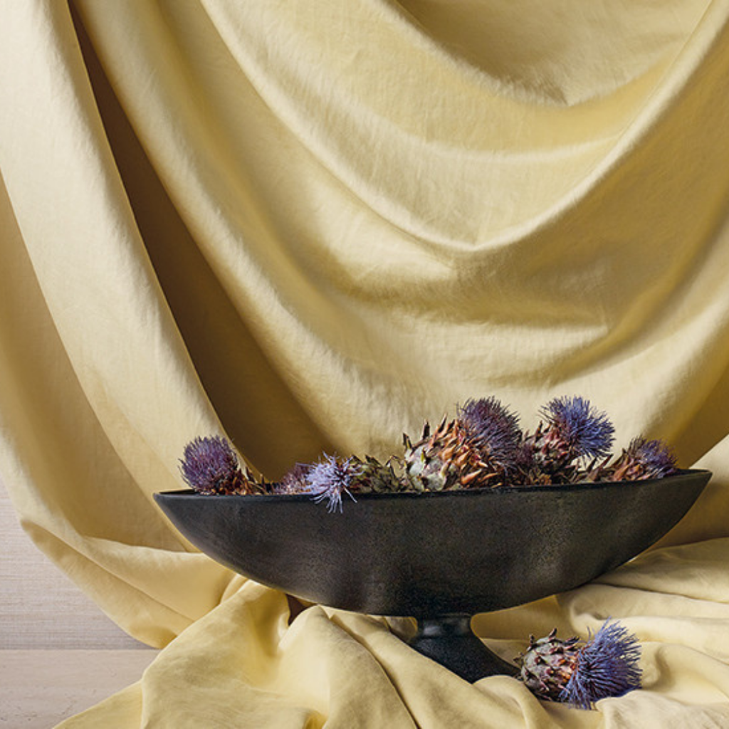 Beautifully uncomplicated with a sophisticated charm and character, this washable cotton linen satin is exceptionally soft to the touch and offers understated luxury for tactile drapes.